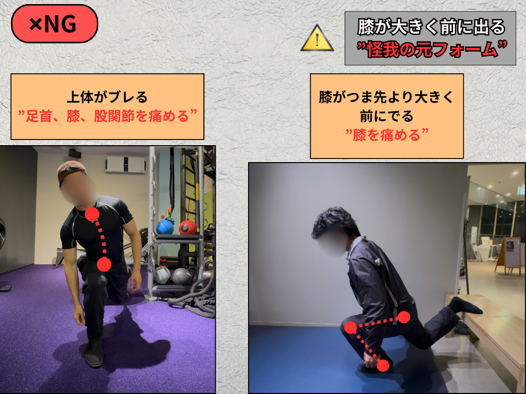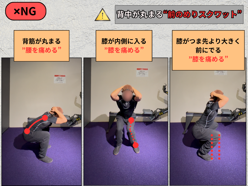 ✖ 膝が内側に入る(膝を痛める)